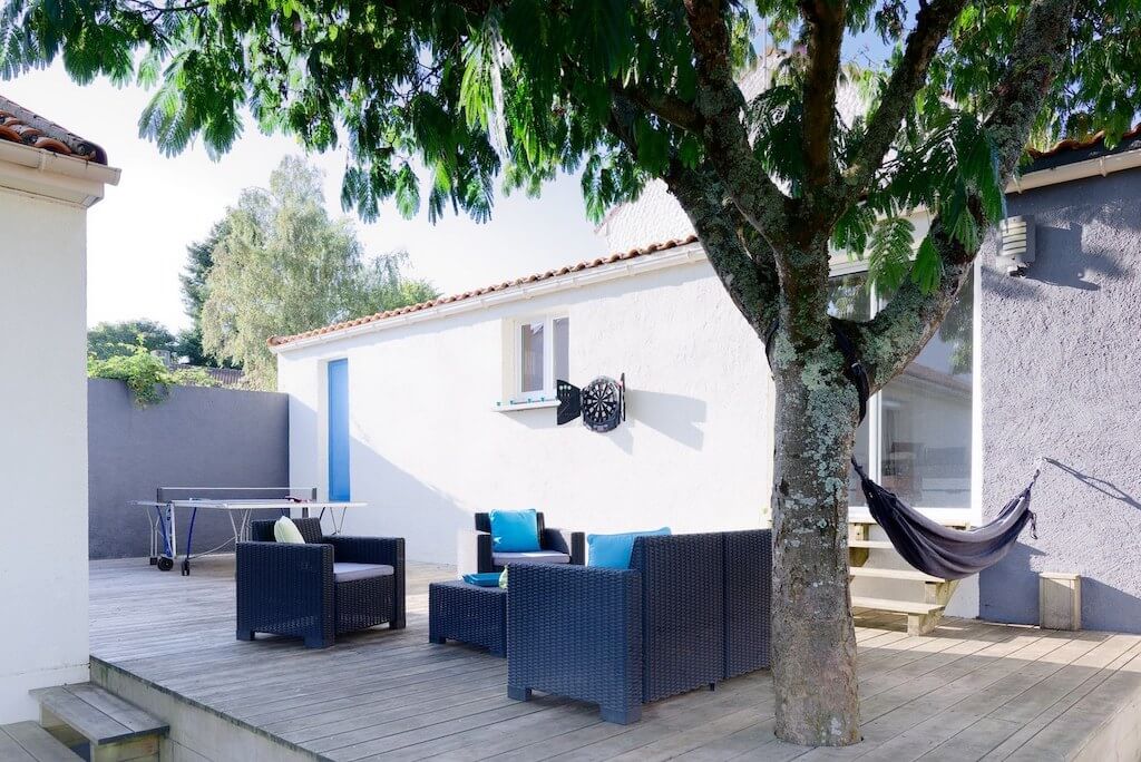 Suivant la météo, vos envies et votre budget, une terrasse de 55 m2 avec table de ping-pong, bains de soleil et salon de jardin peut être mise à disposition.