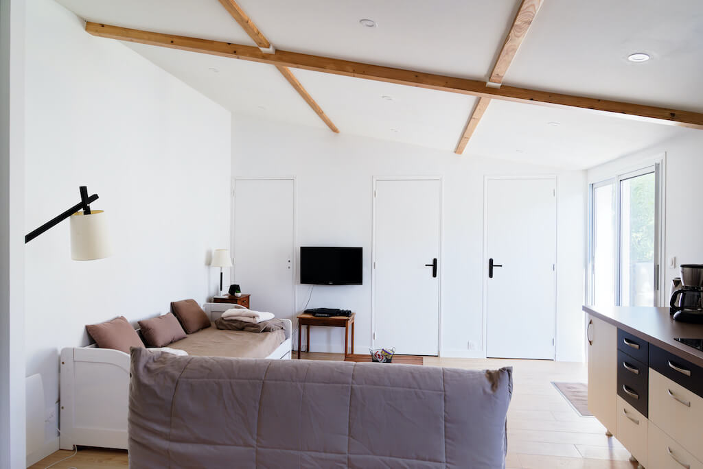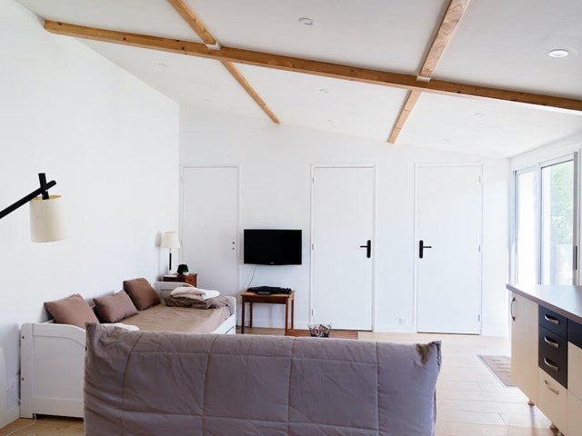 D’une surface totale de 30 m2, il comprend une grande pièce à vivre, une salle d’eau et un WC indépendant.